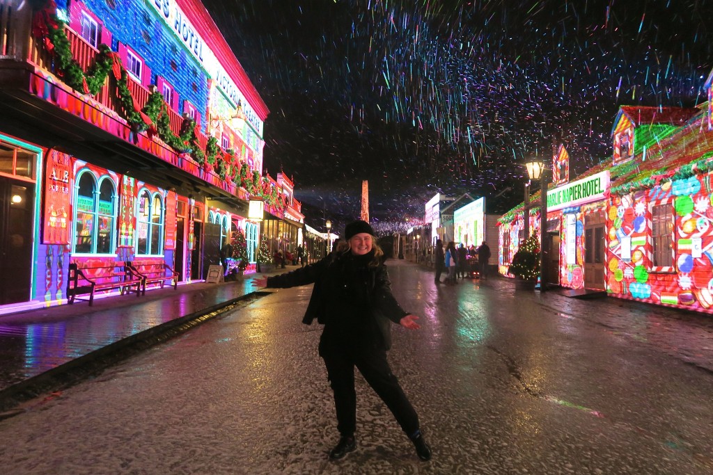 As the sun set, a group of singers gathered around. The sweet sound of Christmas carols floated in the air as people crowded around and join in. Holding their song books, in their long coats, they proudly sang around a podium decorated with a green wreath and red ribbon.